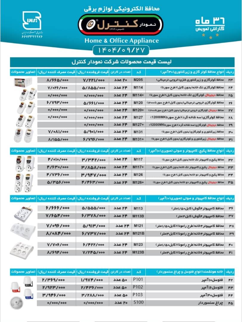 لیست قیمت نمودار کنترل آذر ماه 1404
