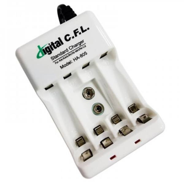 شارژر باتری C.F.L سه کاره مخصوص شارژ باتری های قلمی ، نیم قلمی و باتری کتابی که قابلیت شارژ دارند و یکبار مصرف نمی باشند طراحی و با کیفیت بالایی ساخته شده است.