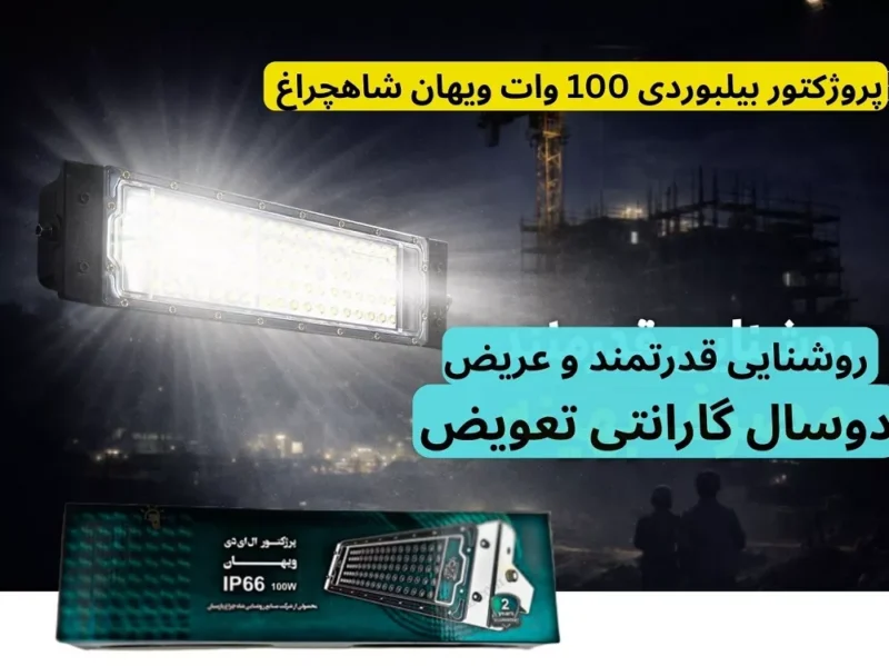 پرژکتور 100 وات بیلبوردی شاهچراغ (مدل ویهان ضد آب ، نورافکن ال ای دی) IP66 دوسال گارانتی تعویض