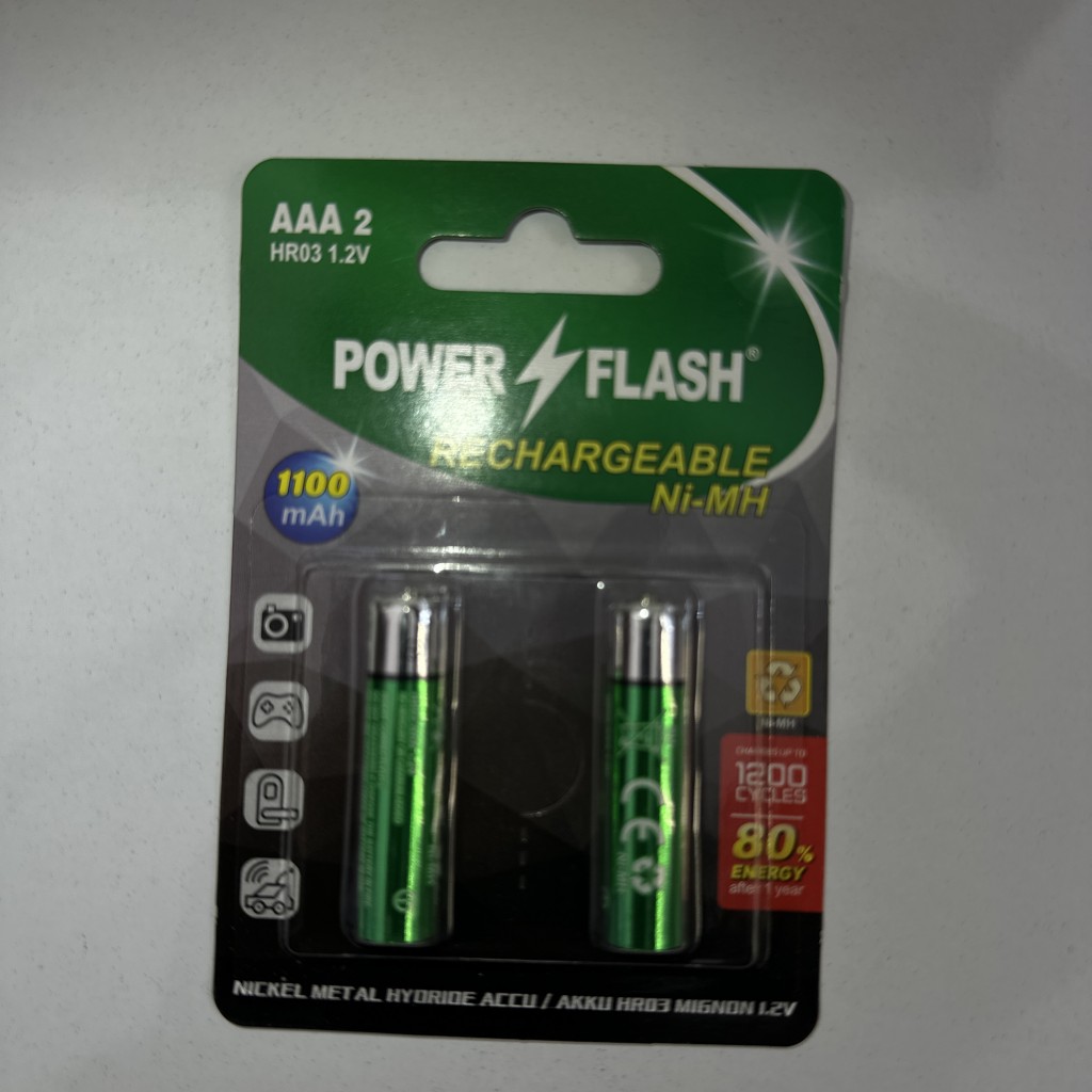 باتری نیم قلمی شارژی پاور فلش 1100 میلی آمپر (بسته 2 عددی) 1/2 ولت